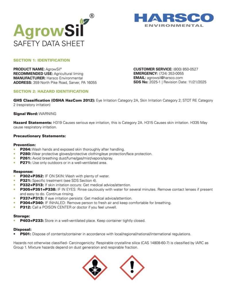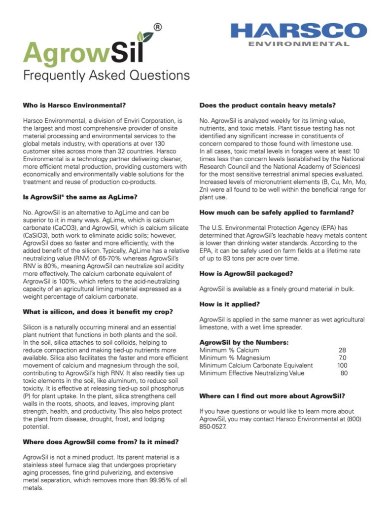 No. AgrowSil is analyzed weekly for its liming value, nutrients, and toxic metals.