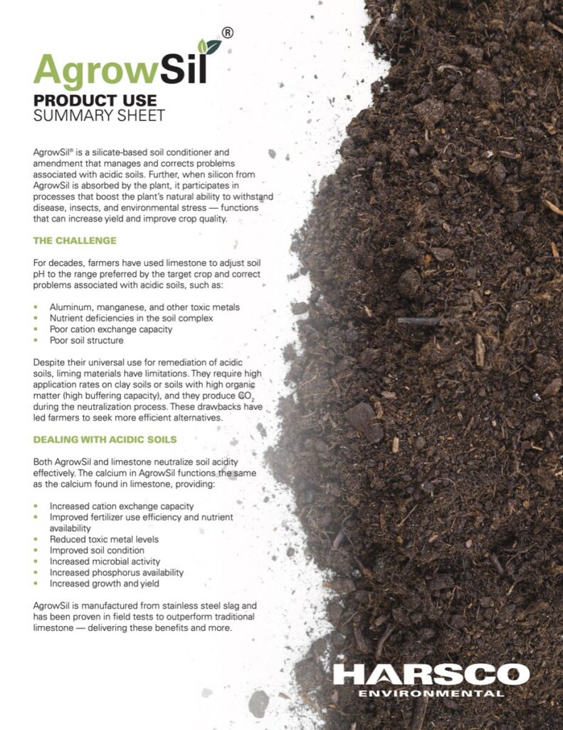 AgrowSil is a calcium silicate soil conditioner that helps to manage and correct problems associated with acidic soils, boosting the natural ability of plants to increase yield and improve crop quality.