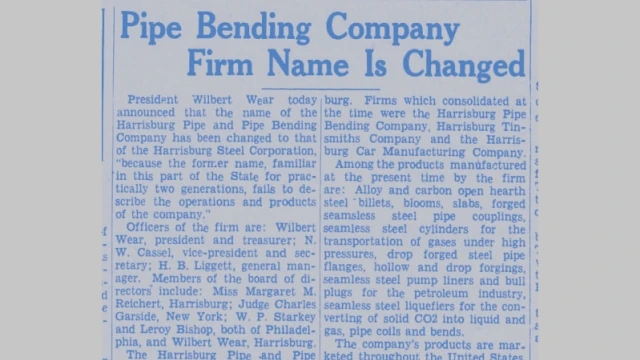 On February 27, 1935, the Harrisburg Pipe and Pipe Bending Company became the Harrisburg Steel Corporation, a change that better reflected its diverse portfolio of forged iron and steel products for industry. During World War II, the workforce swelled to more than 5,000 employees, and the company’s efforts earned the coveted Navy E and Army-Navy E awards for dependable, high-volume production.